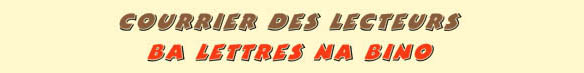 Rubrique "Courrier des lecteurs" to "Ba lettres na bino" Ezali place po na échange ya ba idées, place oyo tokopublier ba lettres na bino ba lecteurs, ba critiques na bino pe ba encouragements to pe lisusu ba conseils oyo ekoki ko-aider biso po tobongisa Magazine na bino "Suka Epoque". |